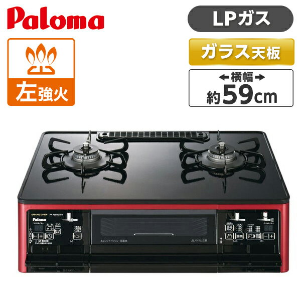 パロマ PA-A96WCR-L LP シャインレッド×ブラック GRANDCHEFPREMIUM(グランドシェフプレミアム) [ ガスコンロ (プロパンガス用 左強火力 2口) ]