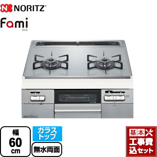 【楽天リフォーム認定商品】【工事費込セット(商品+基本工事)】 [N2WT8RWTS6SI-LPG] Fami ファミ 2口タイプ ノーリツ ビルトインコンロ ダブル高火力 幅60cm シルバーグレーガラストップ クックボックス別売 【プロパンガス】