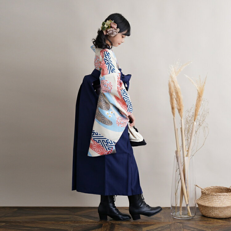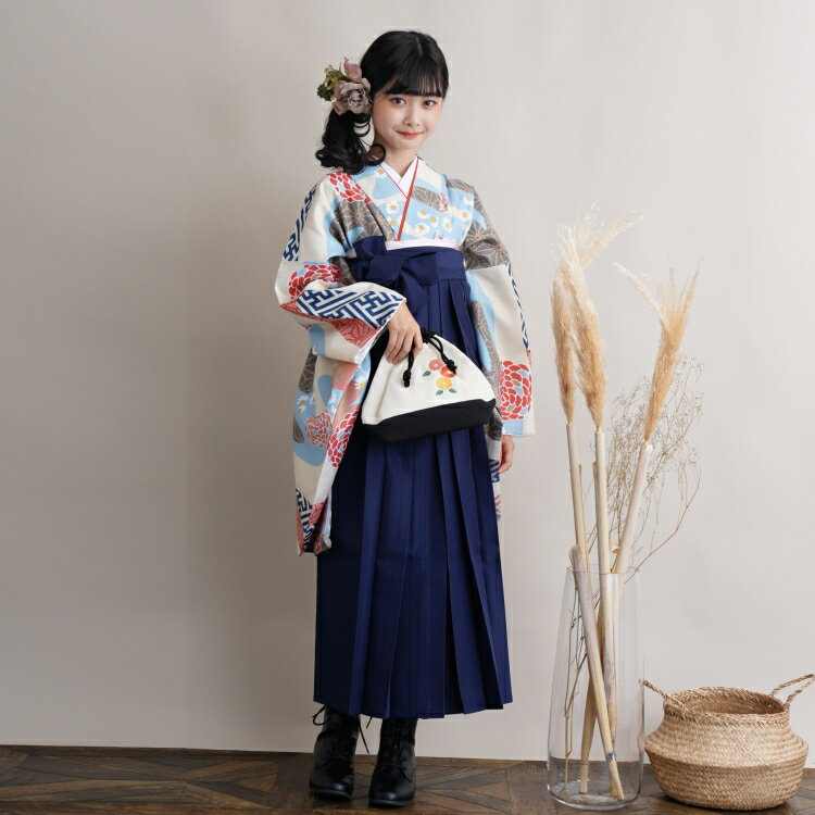 【レンタル】 往復送料無料 2尺袖 着物 袴 15点セット ひよこ商店 袴84-87cm(適応身長143-155cm) 袴セット 卒業式 ジュニア 流水 女の子 水色子供 kids 青 ブルー クリーム 赤 もくもく 丸菊 ニュアンスカラー パステル モダン 小学生 大学生 卒業式